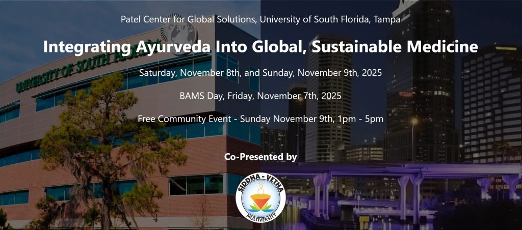 The 2025 Florida Ayurvedic Conference, Integrating Ayurveda Into Global, Sustainable Medicine is an important event aimed at promoting traditional, complementary, and integrative medicine. The Conference is November 7th – 9th, 2025 in Tampa, Florida at the University of South Florida and offers in-person registration.