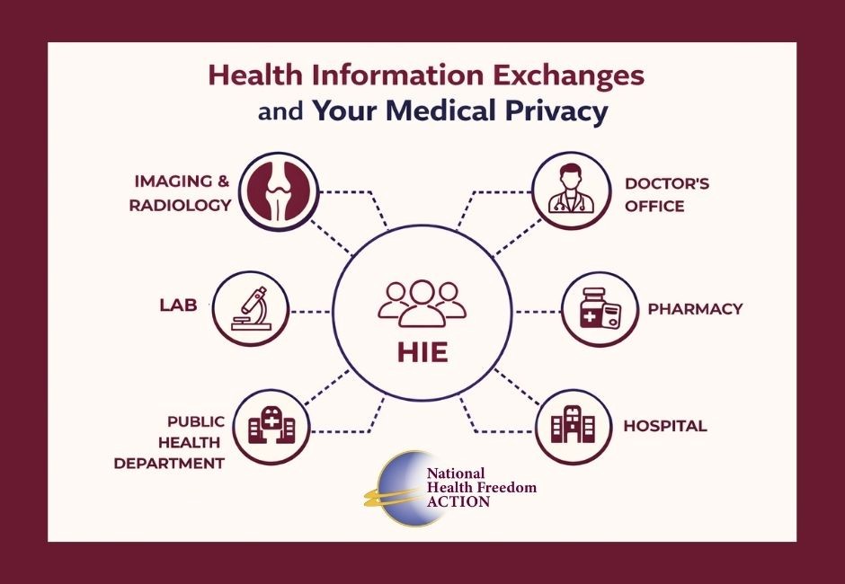 If you want more information about the HIE’s in your home state, provider participation, and what rights you may have regarding these systems, contact one of the groups linked above or NHFC/NHFA Staff Attorney Steven O’Connor at info@nationalhealthfreedom.org.